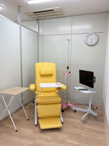 通院でがん化学療法(抗がん薬治療)を受ける患者さまがリラックスして治療を受けることが出来るように、リクライニングチェアやベッド、テレビが完備された点滴室を用意しています。