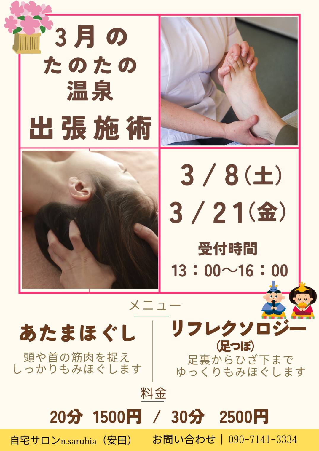 たのたの温泉 3月出張施術のお知らせ