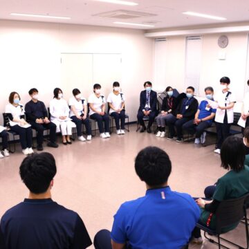 午前中、入社式に続き、法人の概要や歴史、私たちが最も大切にしている理念について学びました。特に行動指針である『5つの約束(関心・感謝・思いやり・対話・行動)』を今の時代に合わせてアップデートし、単なるマナーとしての接遇ではなく、「対話のインフラとしての接遇」の重要性を全員で共有しました。 午後には、院内の部署探検を実施。現場で働く先輩たちの姿や各部署長との対面を通じて、法人が大切にしている地域・患者さま・働く職員への想いを肌で感じる時間となりました。