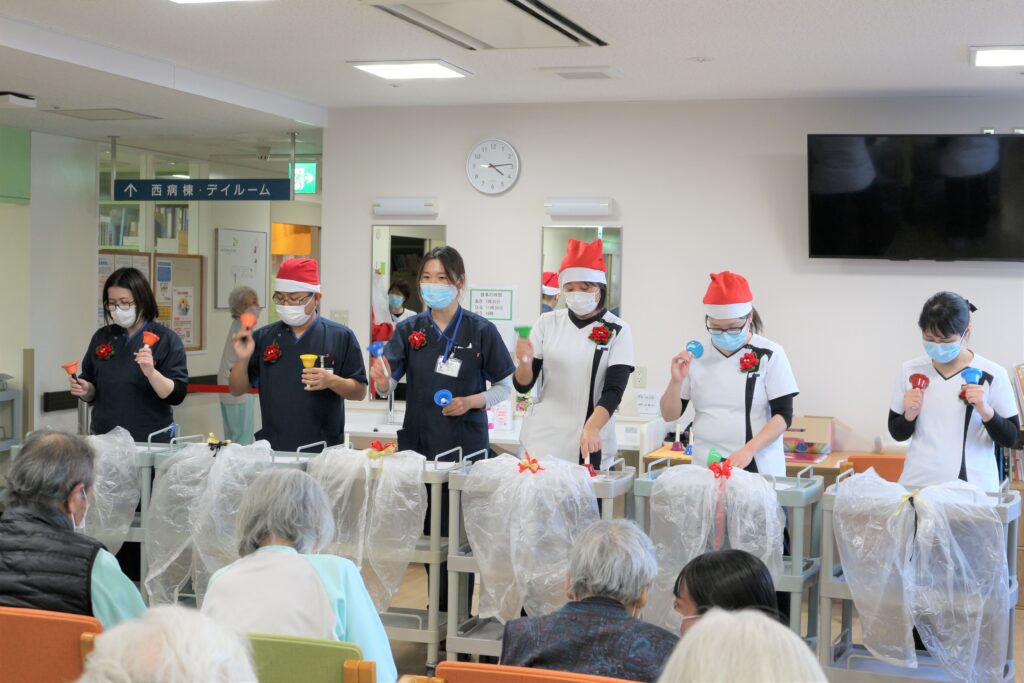 2025年11月および12月に、当院の回復期リハビリテーション病棟にて、当院スタッフによるハンドベル演奏会を開催しました。入院患者さまに少しでも季節を感じ、心安らぐ時間をお過ごしいただければとの思いから企画した取り組みです。